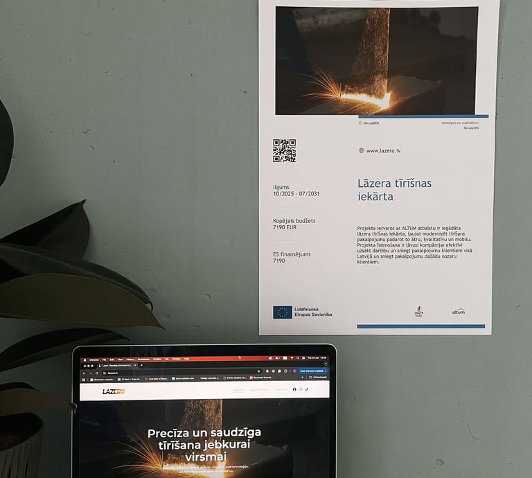 SIA Lazero savas uzņēmuma gaitas ir spējis uzsākt ar ALTUM finansiālu palīdzību, kas ir ļāvusi mums iegādāties modernu lāzera tīrīšanas iekārtu! Šis atbalsts ir bijis izšķirošs mūsu biznesa īstenošanā, ļaujot mums piedāvāt inovatīvus risinājumus saviem klientiem, uzlabojot tīrīšanas efektivitāti un samazinot ietekmi uz vidi.